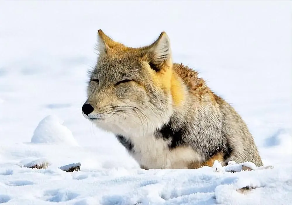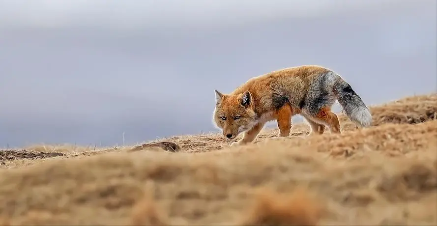 其纺锤形的身体和长尾巴有助于平衡和稳定,使其在崎岖的高原地形中行动更加灵活。藏狐的皮肤和毛发也具有良好的保温性能,使其能够在严寒的高原气候中生存。