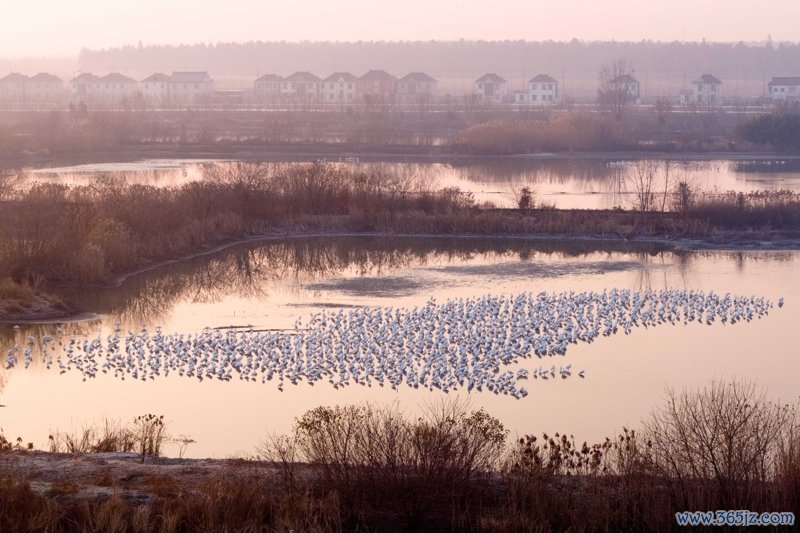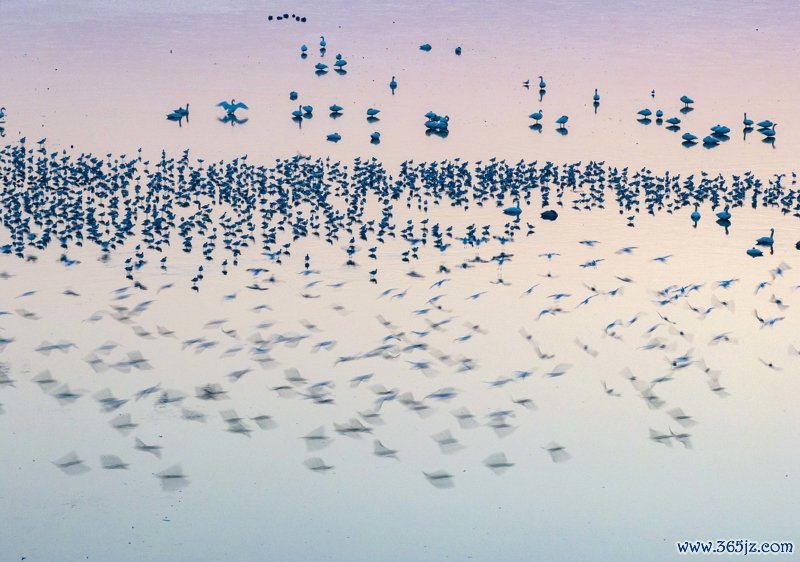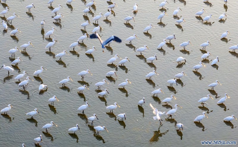 近日,大批候鸟飞抵江苏省兴化市里下河国家湿地公园,成群结队在浅滩觅食、休憩。近年来,当地生态环境持续改善,越冬候鸟数量逐年增多。
