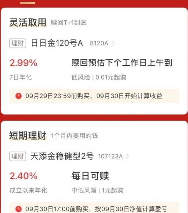 据该人员介绍,部分 T+1 的产品需要于 9 月 29 日收盘前购入,可在 9 月 30 日确认并在 8 天小长假中赢得收益。